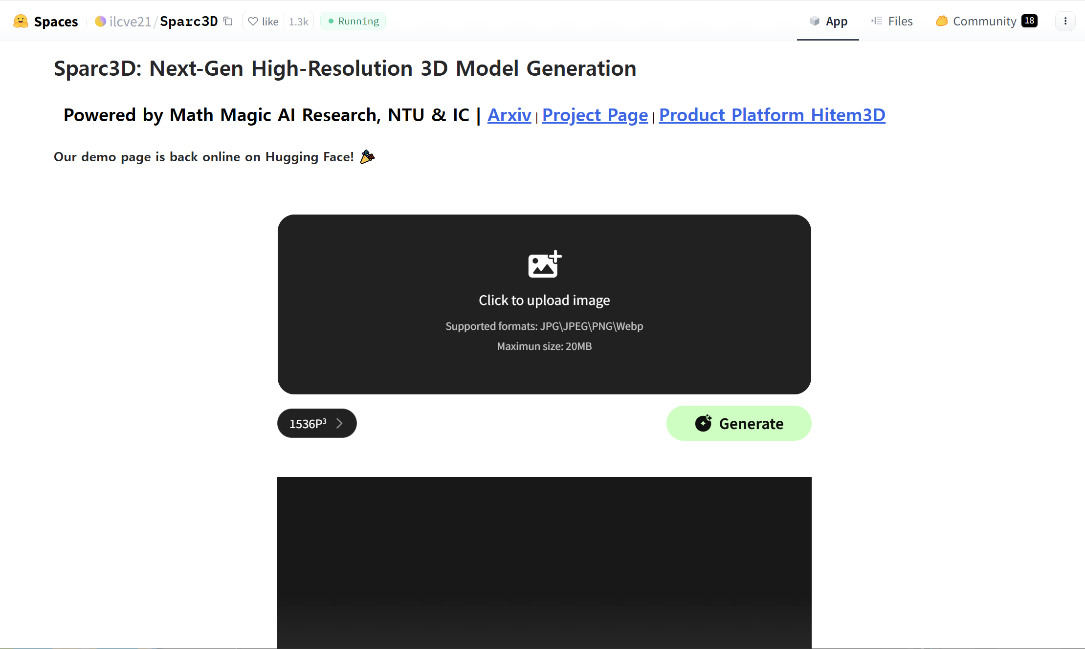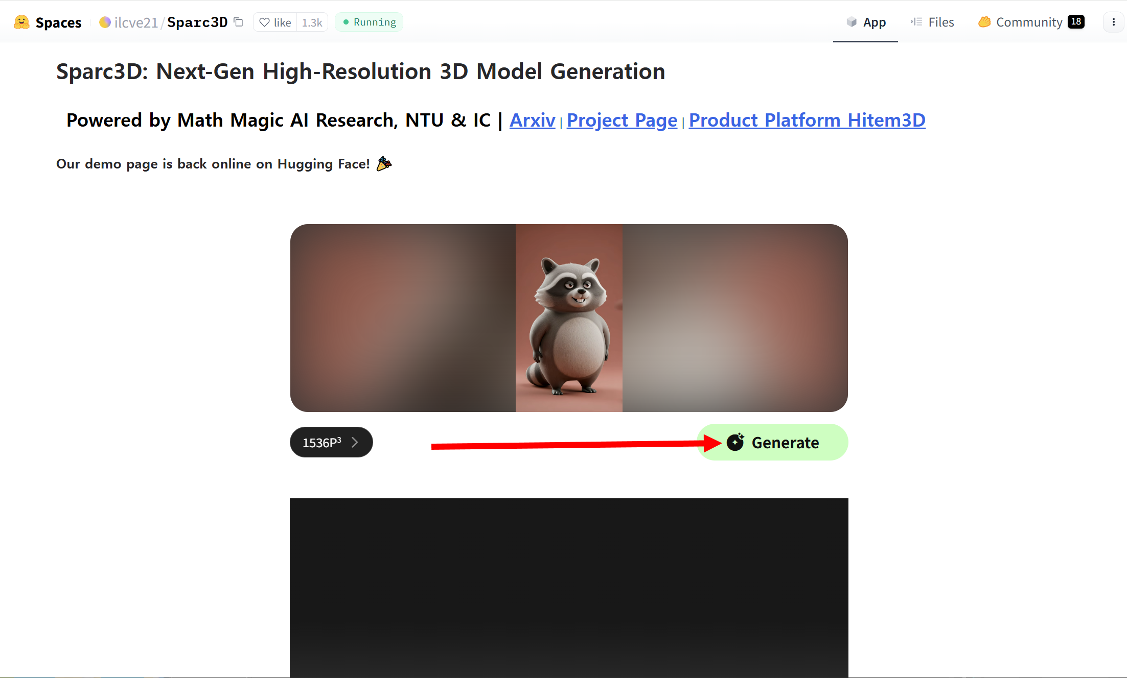 1)Sparc3D를 사용하여 3D 모델을 생성하려면 아래 hitem3d 또는 huggingface 웹사이트로 이동합니다.