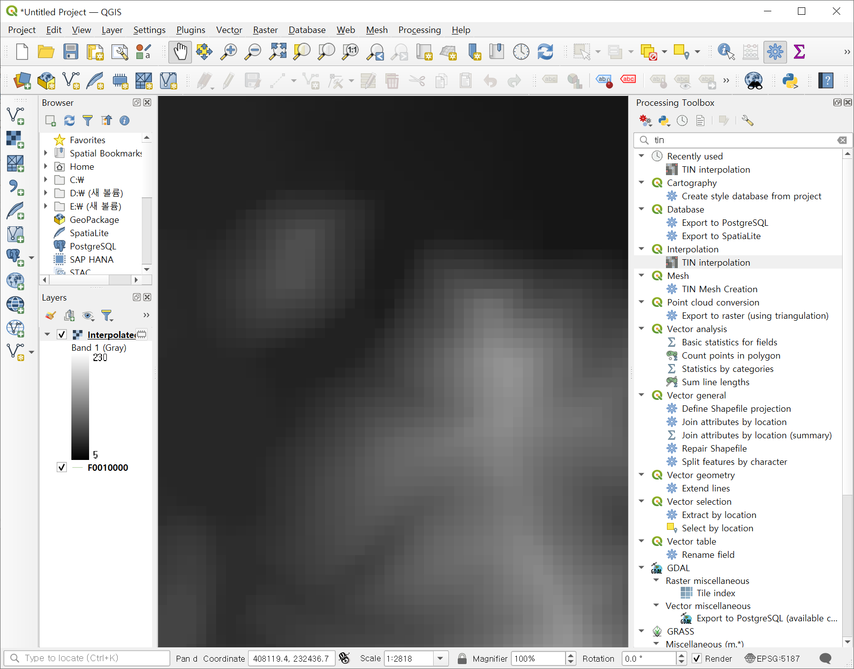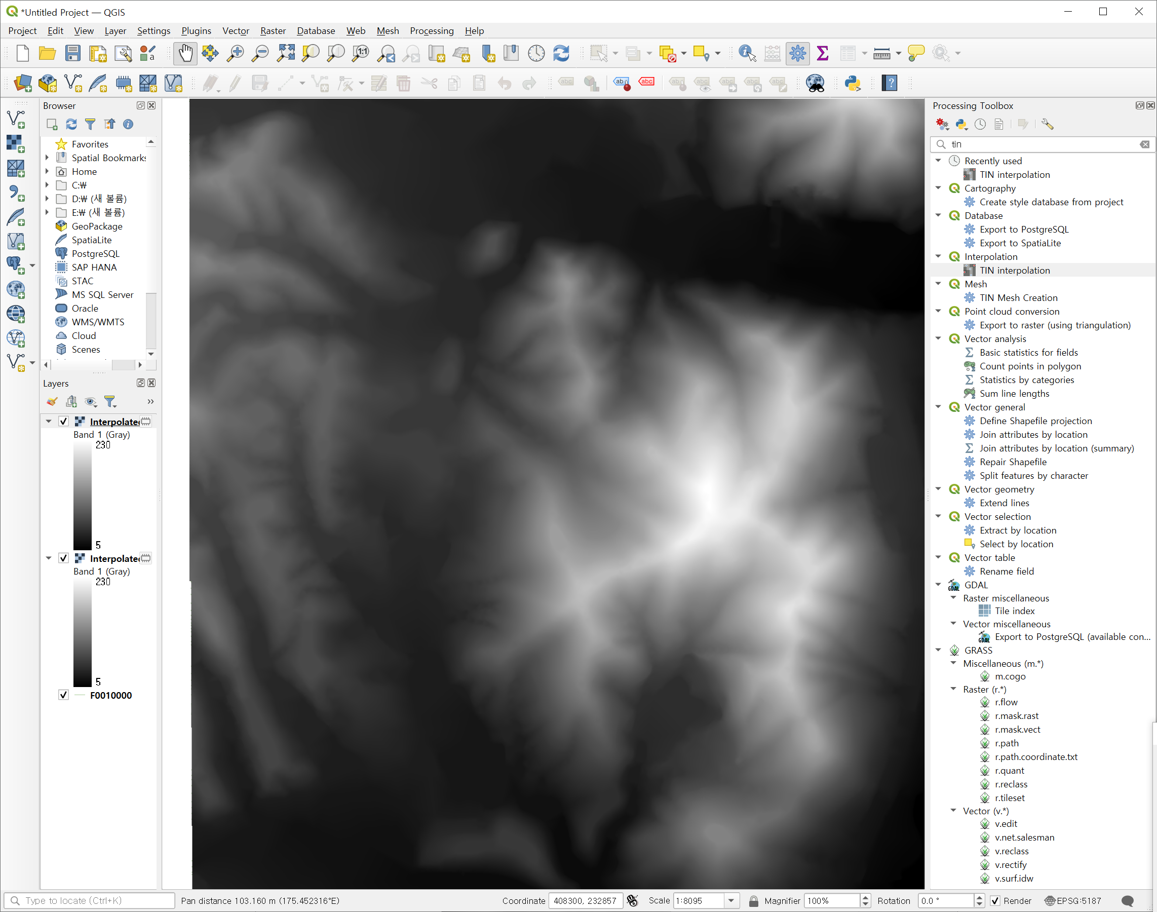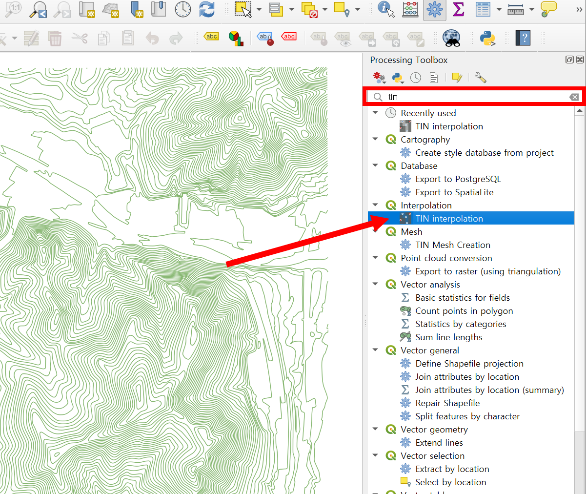 8)Processing Toolbox에서 TIN interpolation을 열기합니다.