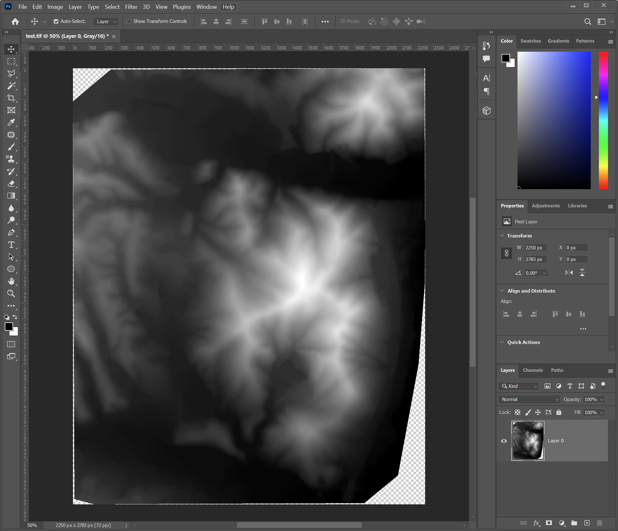 포토샾에서 geoTIFF 이미지를 사용하여 Raw 파일 만들기(유니티 터레인 높이맵, heightmap)