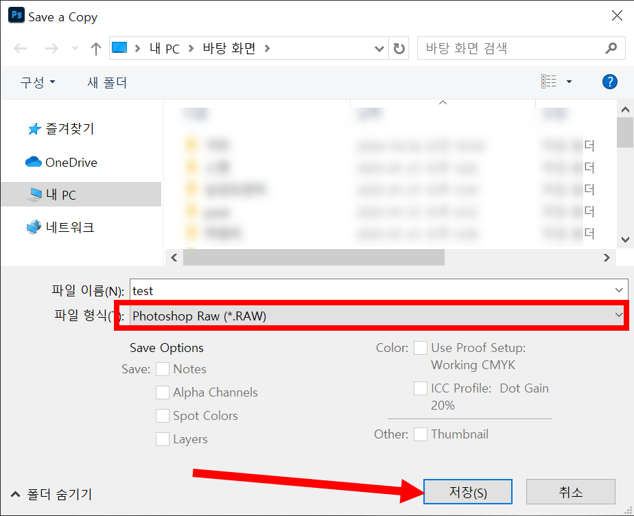 21)이미지를 Photoshop Raw(.RAW) 파일 형식으로 저장합니다.