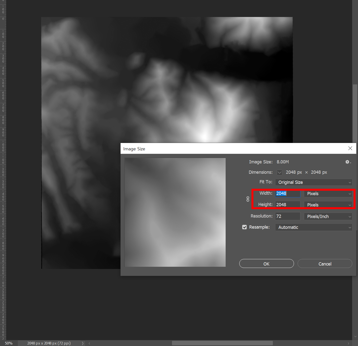 20)이미지 해상도를 설정합니다(유니티 height map의 권장 해상도는 2의 n승 +1)