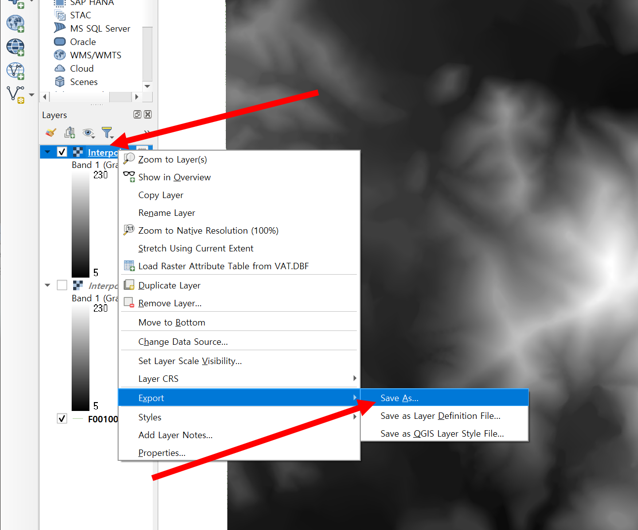 9)vector layer에서 등고선 레이어를 선택하고 interpolation attribute에서 등고수치를 선택합니다.