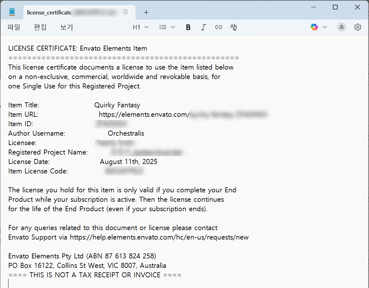 엔바토(Envato Elements)에서 다운로드한 음원의 저작권 클레임 Claim Clear ready