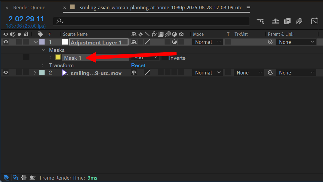 11)트래킹이 완료되면 마스크(Mask Path)에 키프레임이 추가된것을 확인할수있습니다.