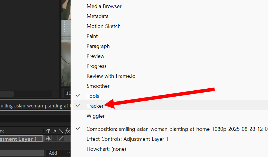 6)우측에서 Tracker 패널을 확인합니다.