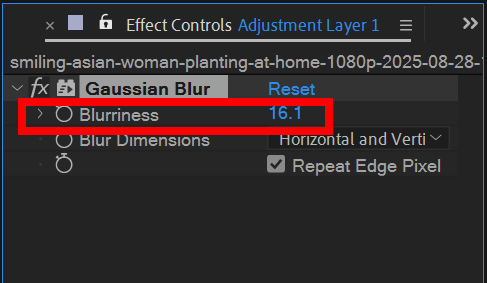 14)effects & presets 에서 Blur를 검색하고 adjustment 레이어에 추가합니다.