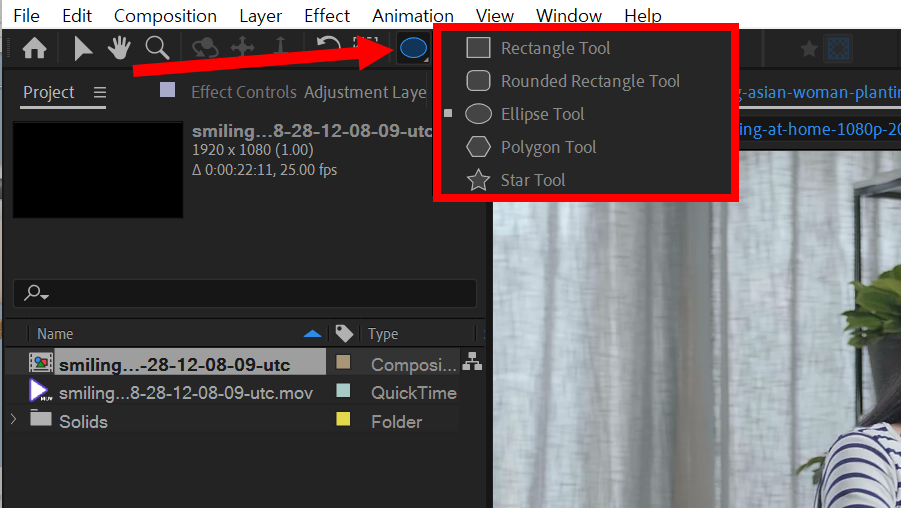 3)상단에서 shape tool를 선택합니다(ellipse tool)