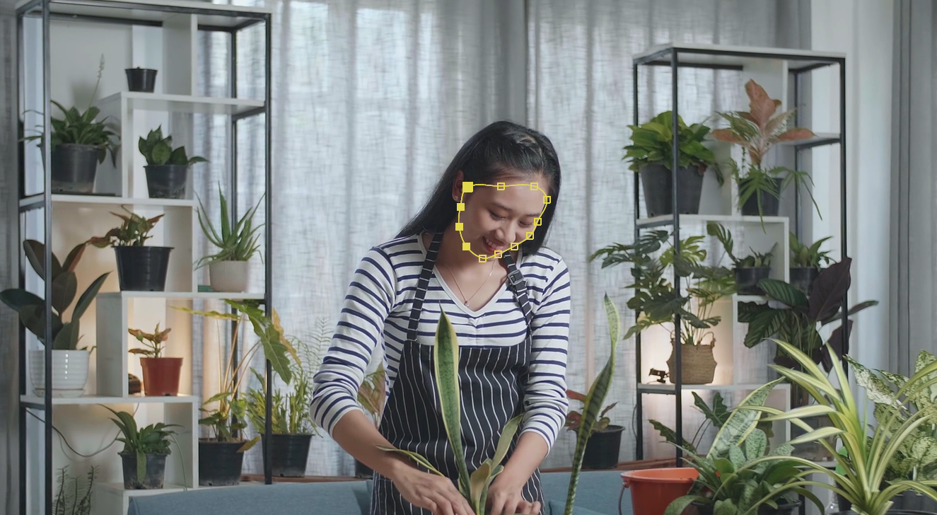10)트래킹을 시작하고 shape tool로 선택한 영역 내에 인물의 얼굴이 감지되면 얼굴 형태 마스크를 확인할수있습니다.