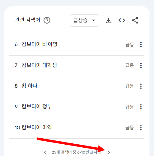 6)검색어 목록 페이지를 넘기려면 하단의 화살표를 클릭합니다.