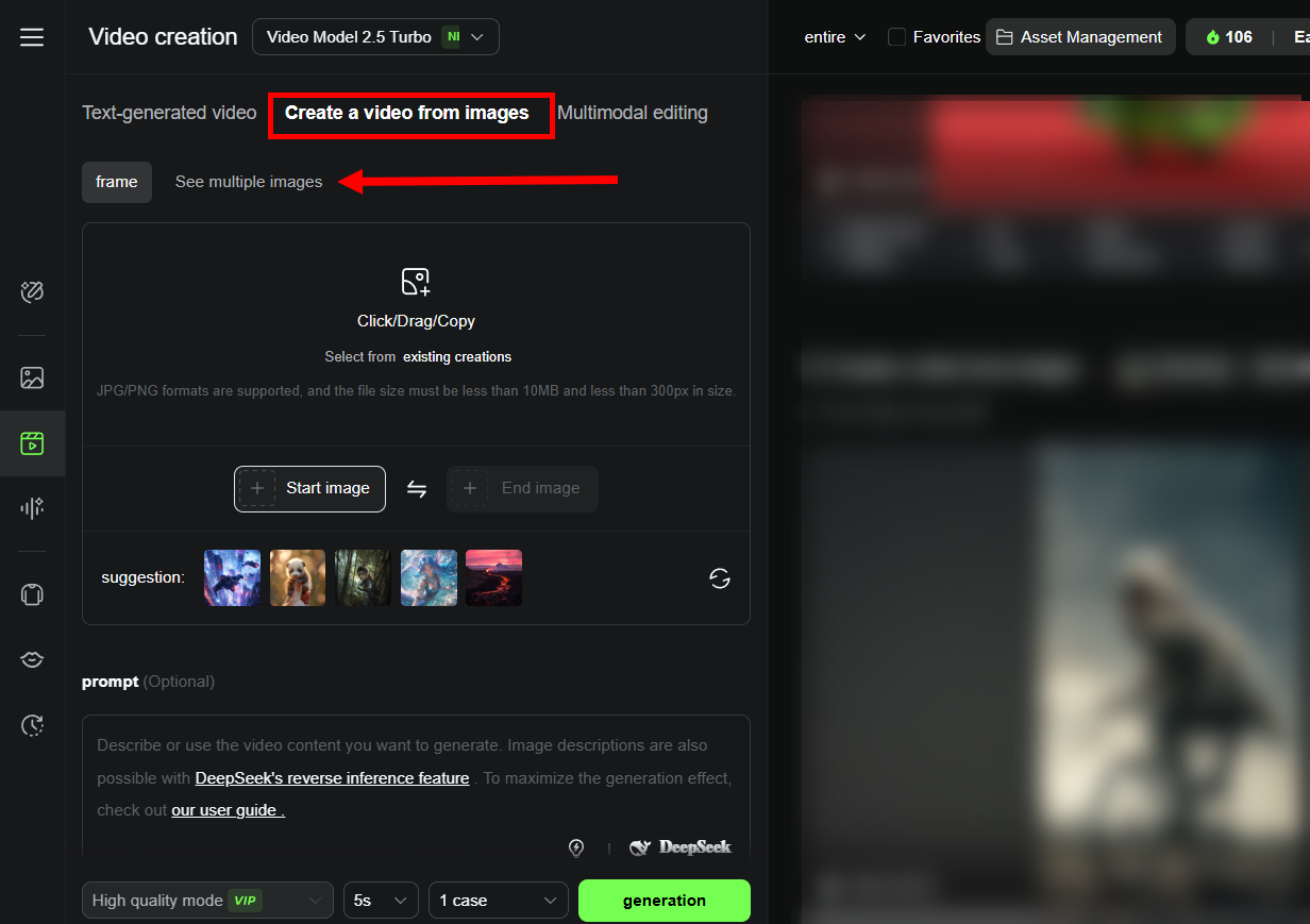 2)이미지로 비디오 생성(Create a video from images)에서 see multiple images를 선택합니다.