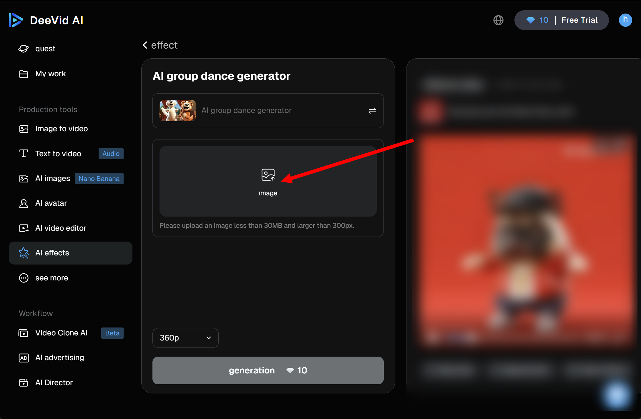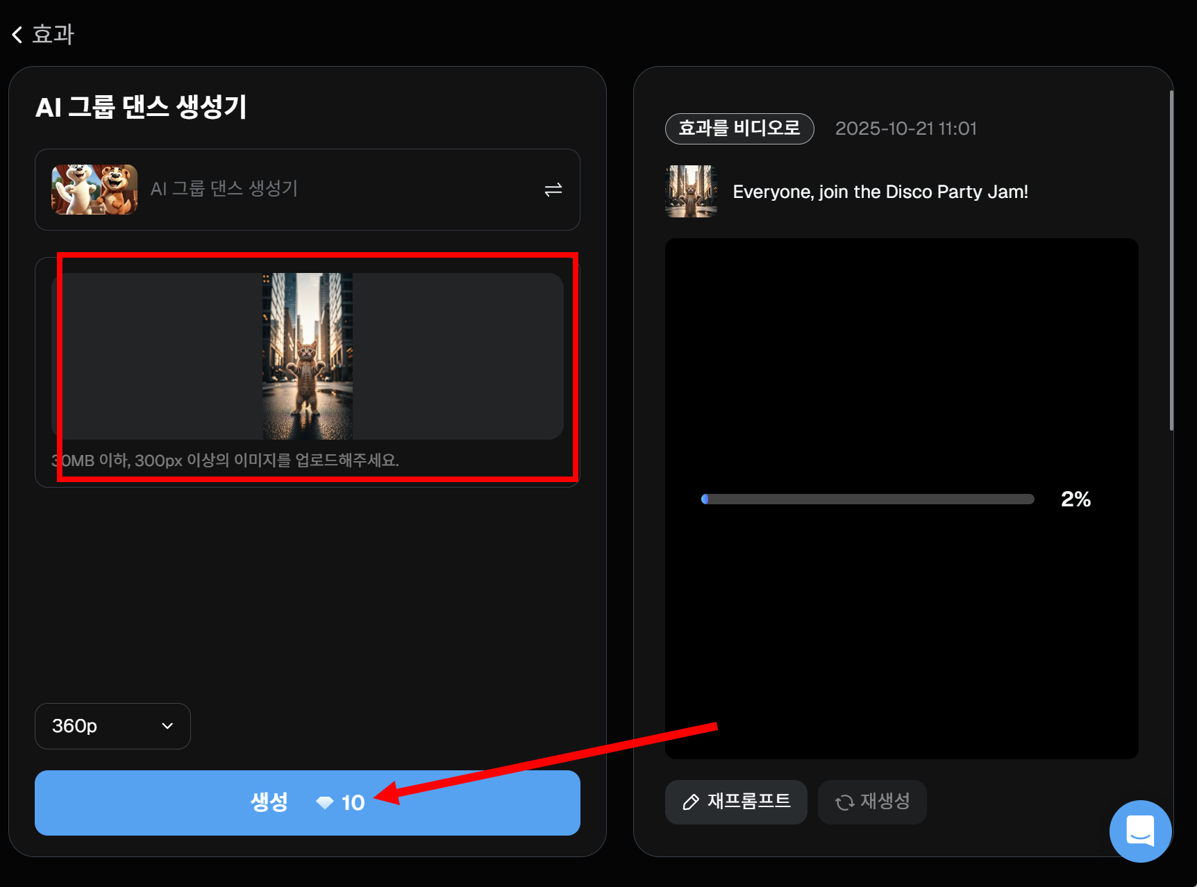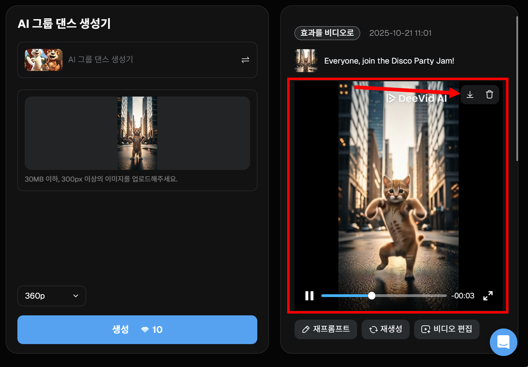 Deevid AI에서 댄스 이펙트를 사용하여 고양이 춤추는 동영상 만들기