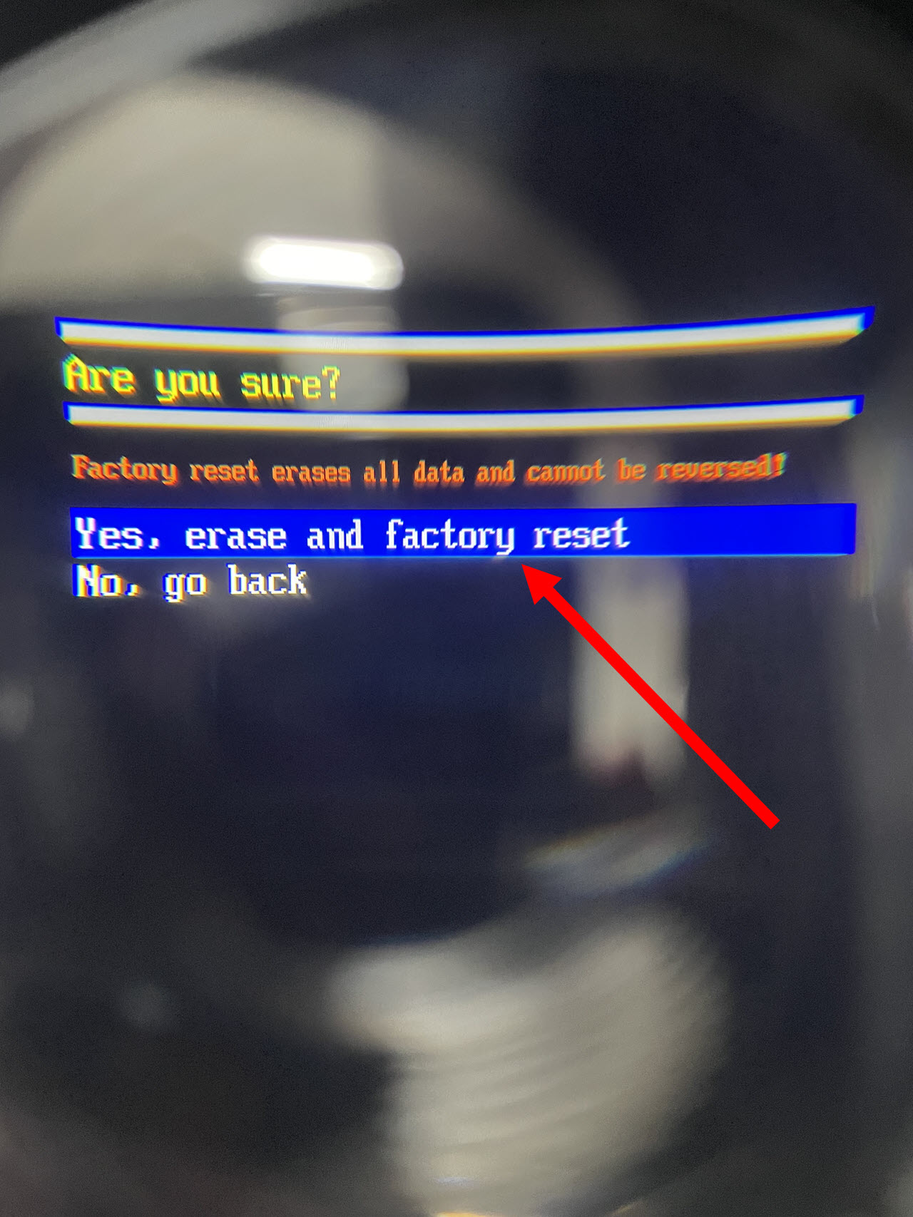 4)공장 초기화는 헤드셋의 모든 데이터를 지우고 다시 되돌릴수없습니다. 공장초기화를 시작하려면 Yes, erase and factory reset을 선택합니다.