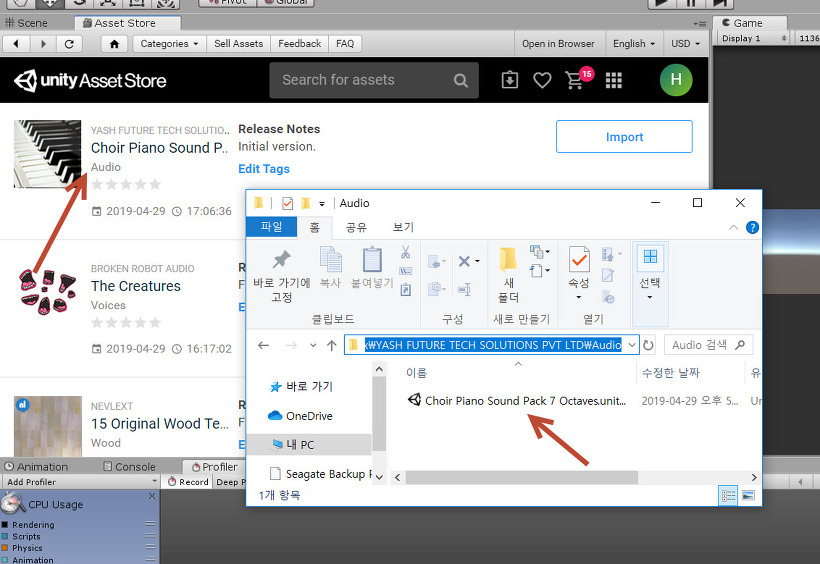 유니티 에셋스토어(asset store)에서 구매한 에셋을 불러오는 방법