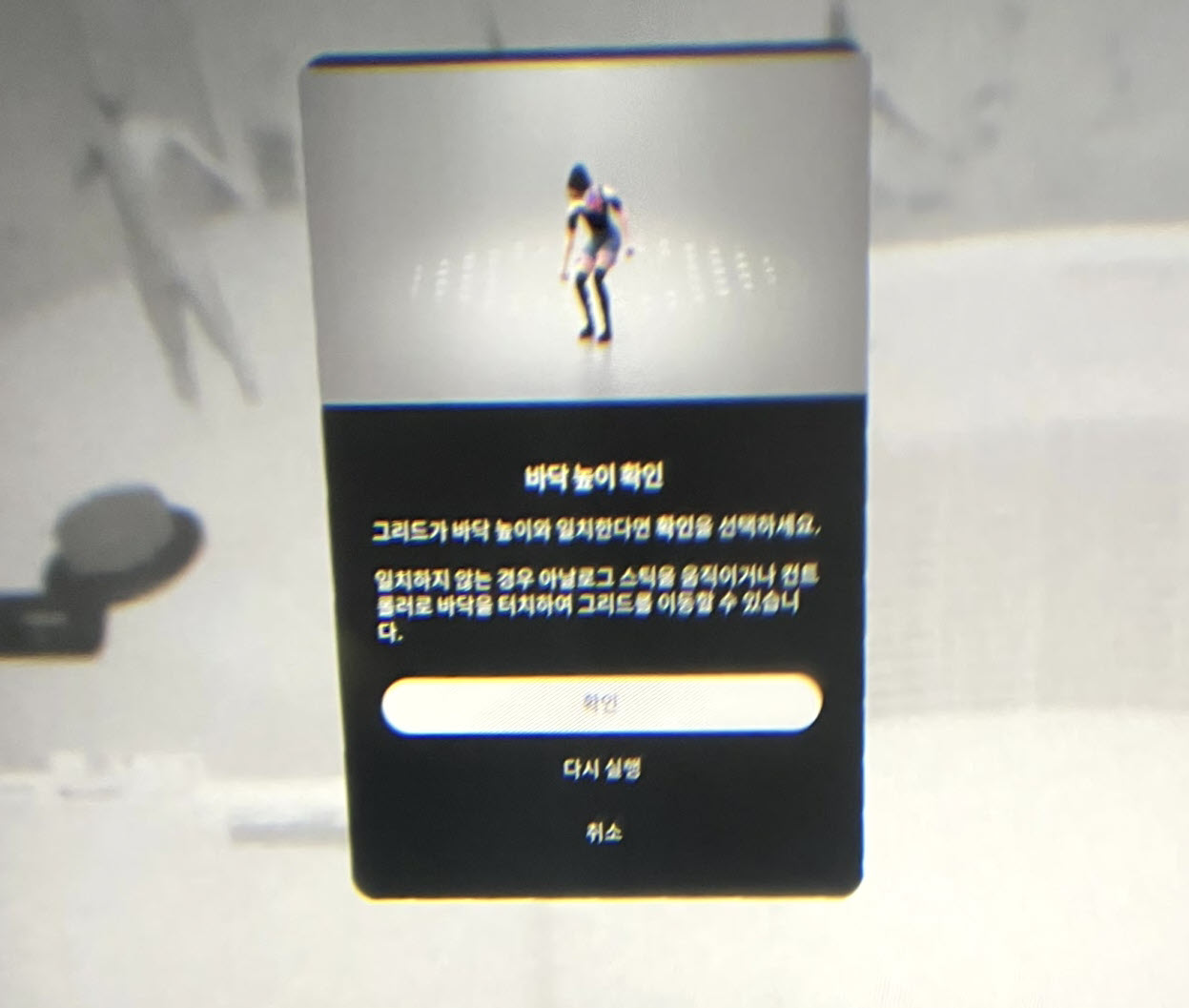 4)바닥 높이와 그리드가 일치하지않는 경우 컨트롤러의 아날로그 스틱을 상하로 이동하면 높이를 조정할수있습니다.