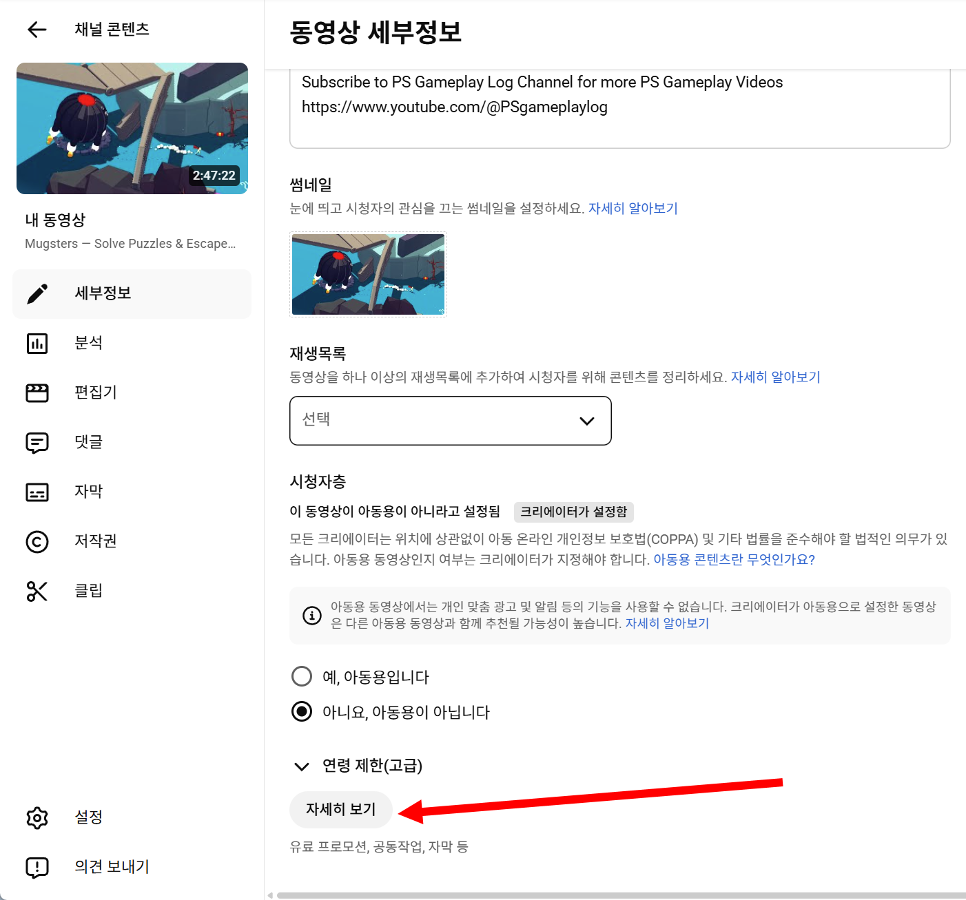 7)동영상 세부정보에서 자세히 보기로 이동합니다.
