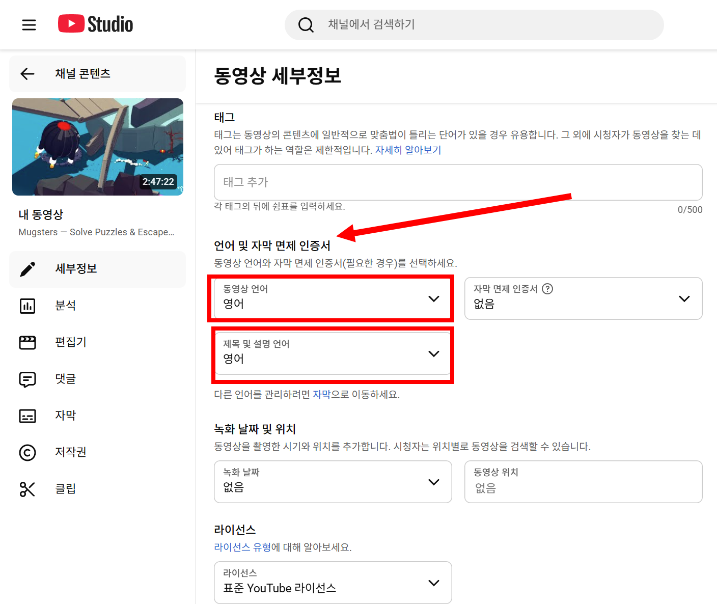 이미 업로드한 동영상의 언어와 제목 및 설명언어 변경
