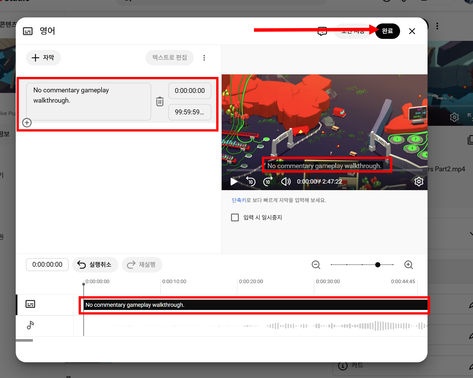 유튜브 동영상 자막(영어) 파일 업로드하기