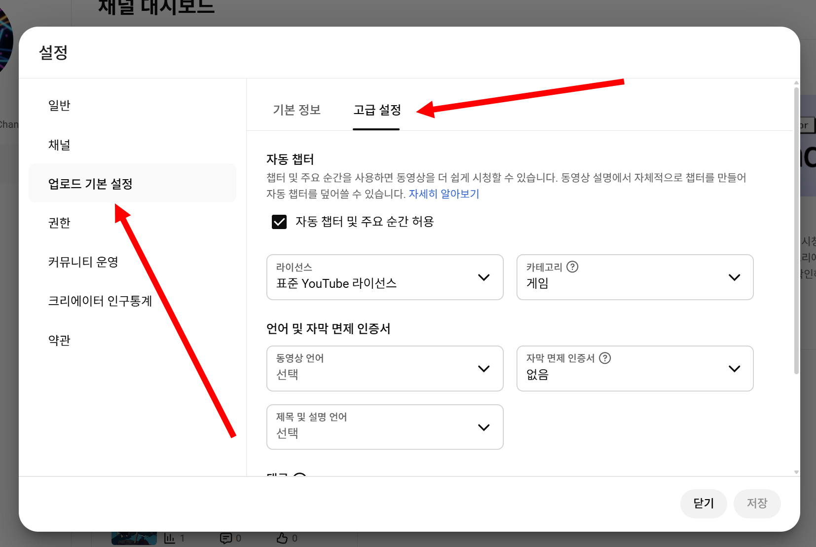 3)업로드 기본 설정의 고급 설정으로 이동합니다.