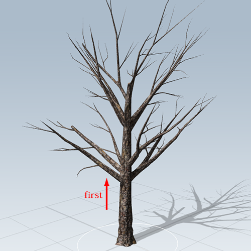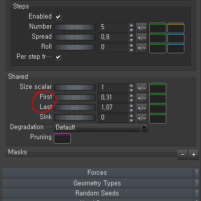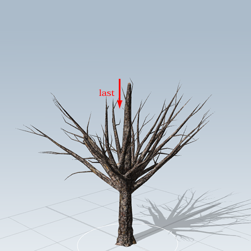 first 수치를 올리면 가지의 시작점이 올라갑니다. last 수치를 내리면 가지가 끝나는 지점이 내려갑니다.