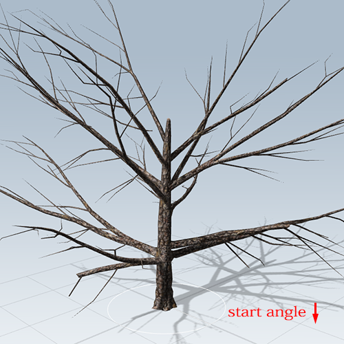 3)start angle은 가지의 각도를 조절합니다.