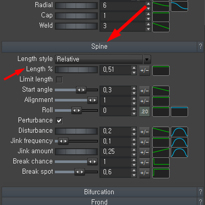 2)spine그룹에서 Length는 가지의 길이를 조절합니다.