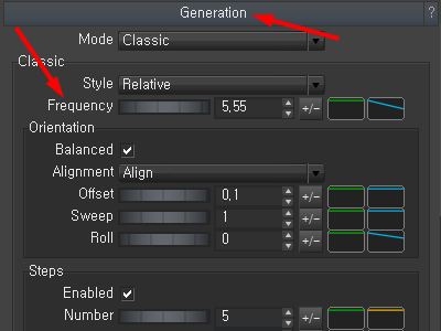 6)generation 그룹의 frequency는 가지의 개수를 조절합니다.