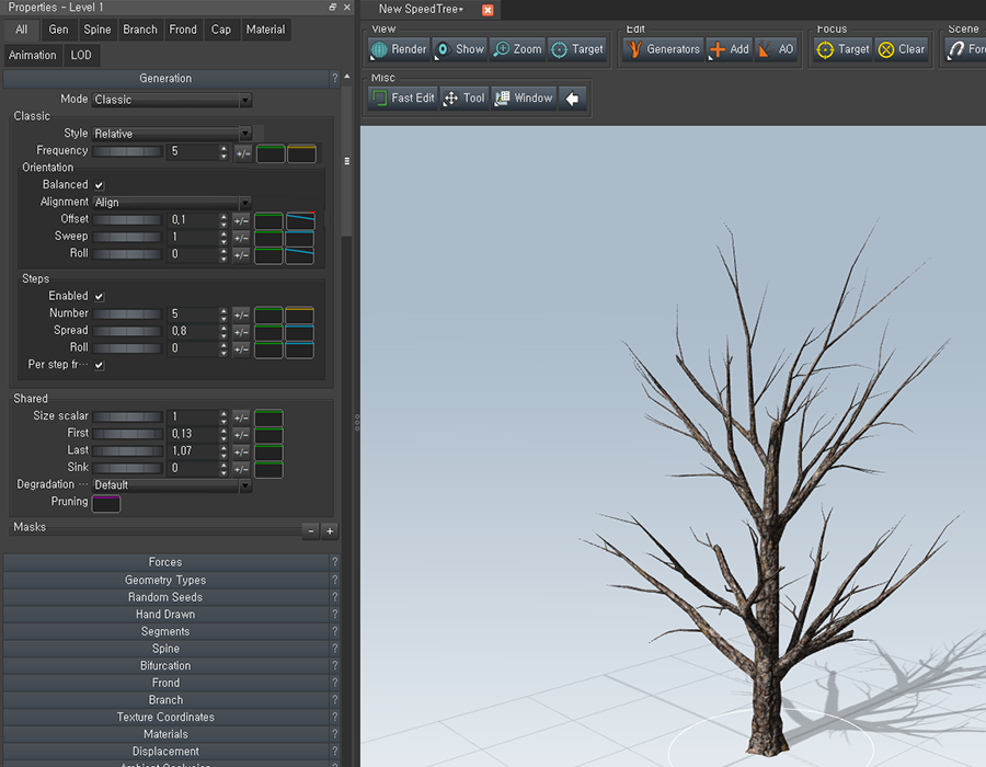 스피드트리(speedtree)에서 나무 모델링하기(가지 수정하기)