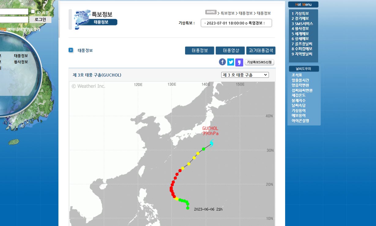 실시간 태풍 정보를 확인할수있는 웹사이트 모음(국내, 해외)