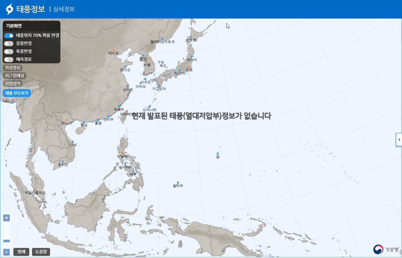 기상청 홈페이지의 태풍 메뉴에서 태풍 관련 정보를 확인할 수 있습니다.