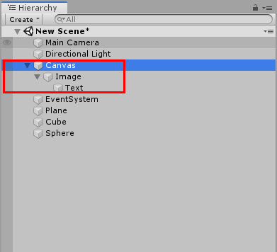 4)스크린 공간의 캔버스와 마찬가지로 캔버스에 UI 요소를 추가한다.