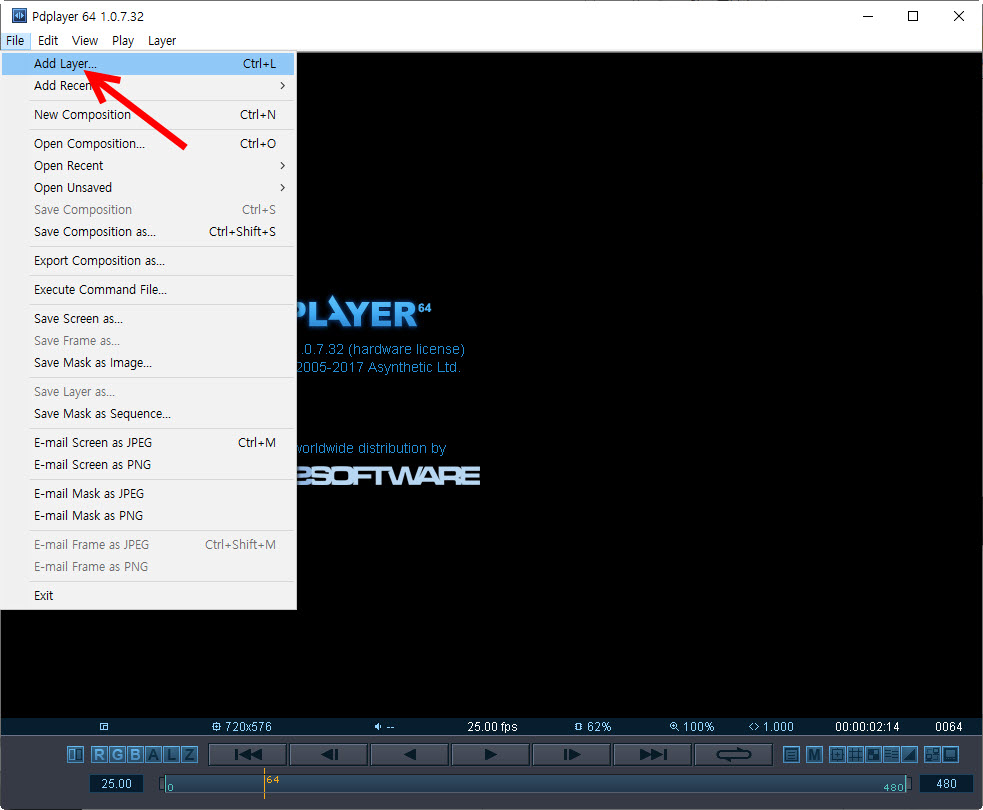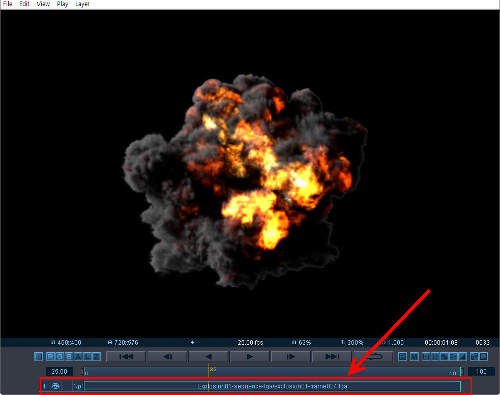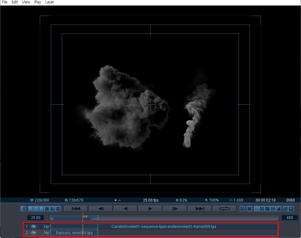 4)플레이어 하단에서 추가한 이미지 시퀀스의 레이어를 확인할수있다.