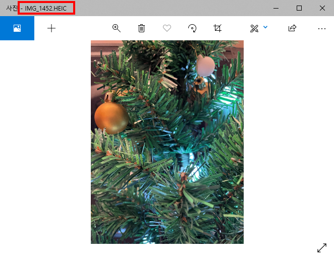 6)두가지 프로그램을 설치하면 사진 앱에서 정상적으로 heic파일의 이미지를 표시하는것을 확인할수있다.