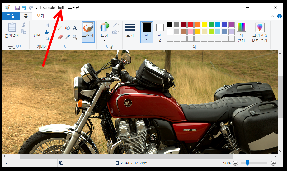 8)윈도우 그림판에서 heif 또는 heic 형식의 이미지 파일을 불러오기가능하며 편집 및 저장할수있다.