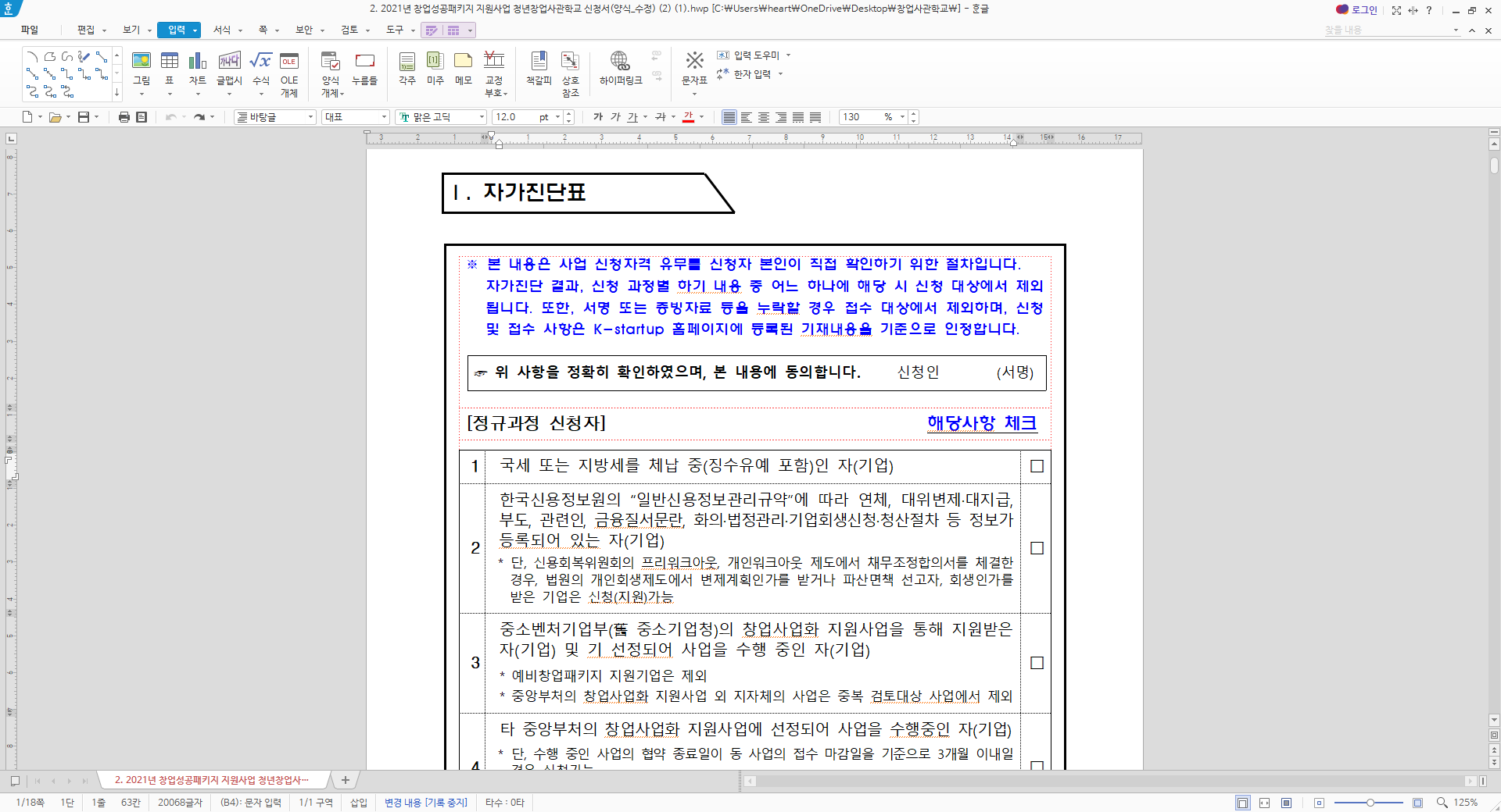 1)한컴오피스를 실행하고 문서(hwp)를 불러오기한다.