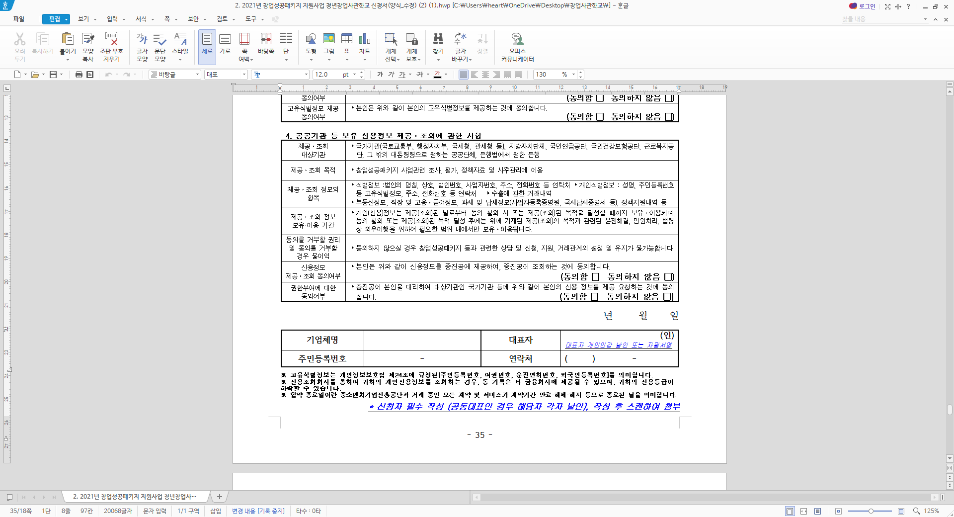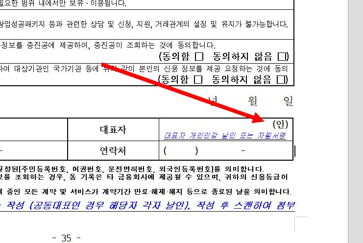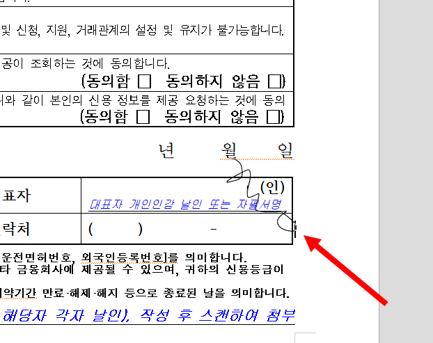 3)문서에서 서명이 필요한 위치로 이동한다.
