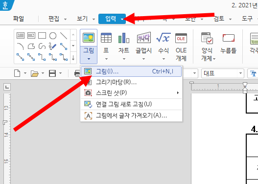 4)상단의 입력 메뉴에서 그림으로 이동하고 서명을 표시한 이미지를 선택한다.