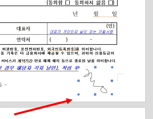 9)이미지를 서명이 필요한곳에 위치시킨다.