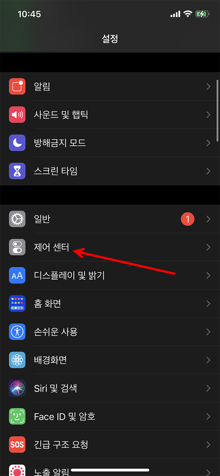 3)제어 센터에 화면 기록 항목이 추가된것을 확인한다.