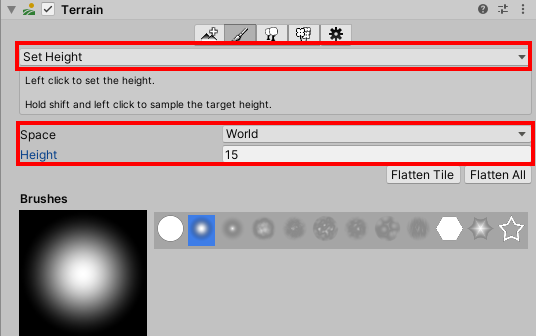 7)set height를 사용하여 터레인의 목표 높이를 특정 값을 설정할수있다.