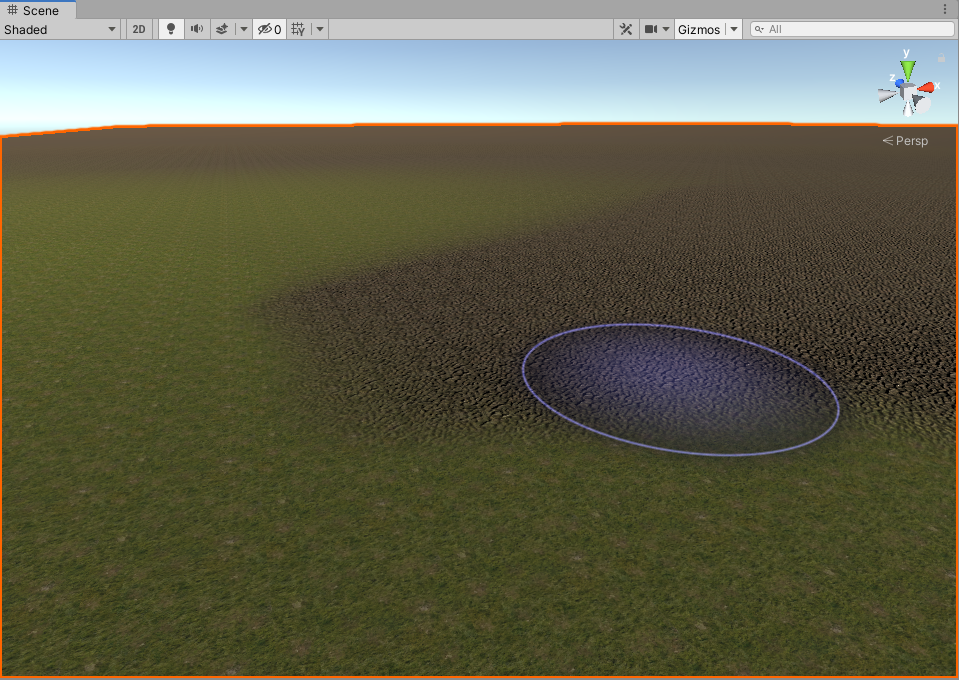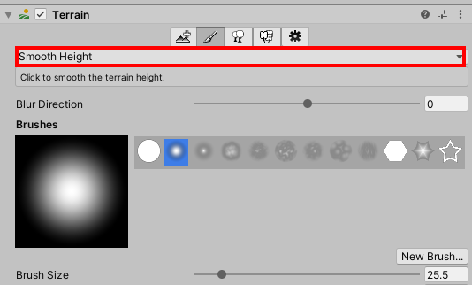 높이(height)의 수치를 설정하고 터레인에 브러쉬 페인팅을 진행하면 지형이 특정 높이를 향해 높아지거나 낮아지는것을 확인할수있다.