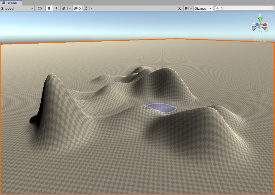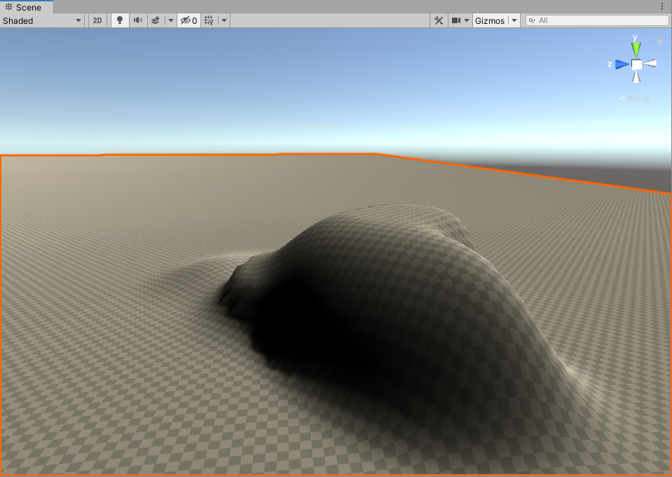 3)터레인 오브젝트에 페인팅을 진행한다. 터레인 위에서 클릭, 드래그하여 지형을 높일수있으며 클릭+shift, 드래그하여 지형을 낮출수있다.
