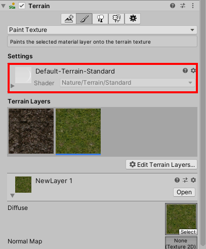 빌트인 렌더 파이프라인의 터레인 쉐이더 및 터레인 레이어 속성