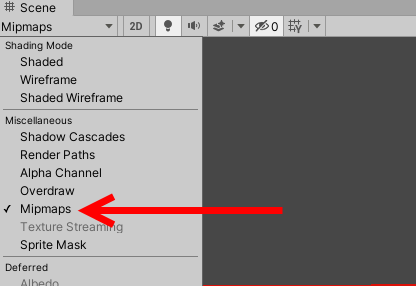 4)씬의 draw mode를 밉맵으로 변경한다.