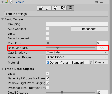 유니티 터레인 텍스쳐 설정(밉맵, base map dis, base texture resolution)