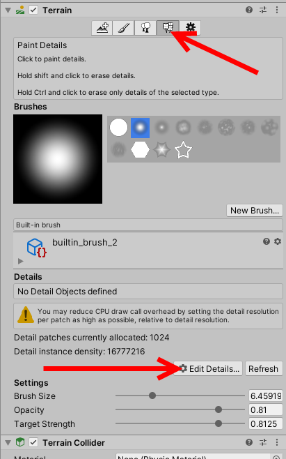 유니티 터레인에 디테일 추가하기(paint details, grass)