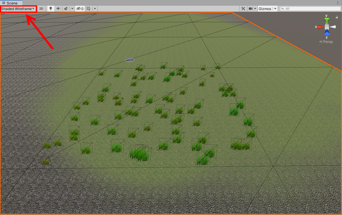 7)씬의 draw mode를 shaded wireframe으로 변경한다.