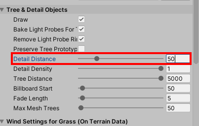 9)detail distance는 디테일이 컬링되는 거리이다. 카메라에서 해당 거리보다 먼 곳에 있는 디테일을 표시하지않는다.
