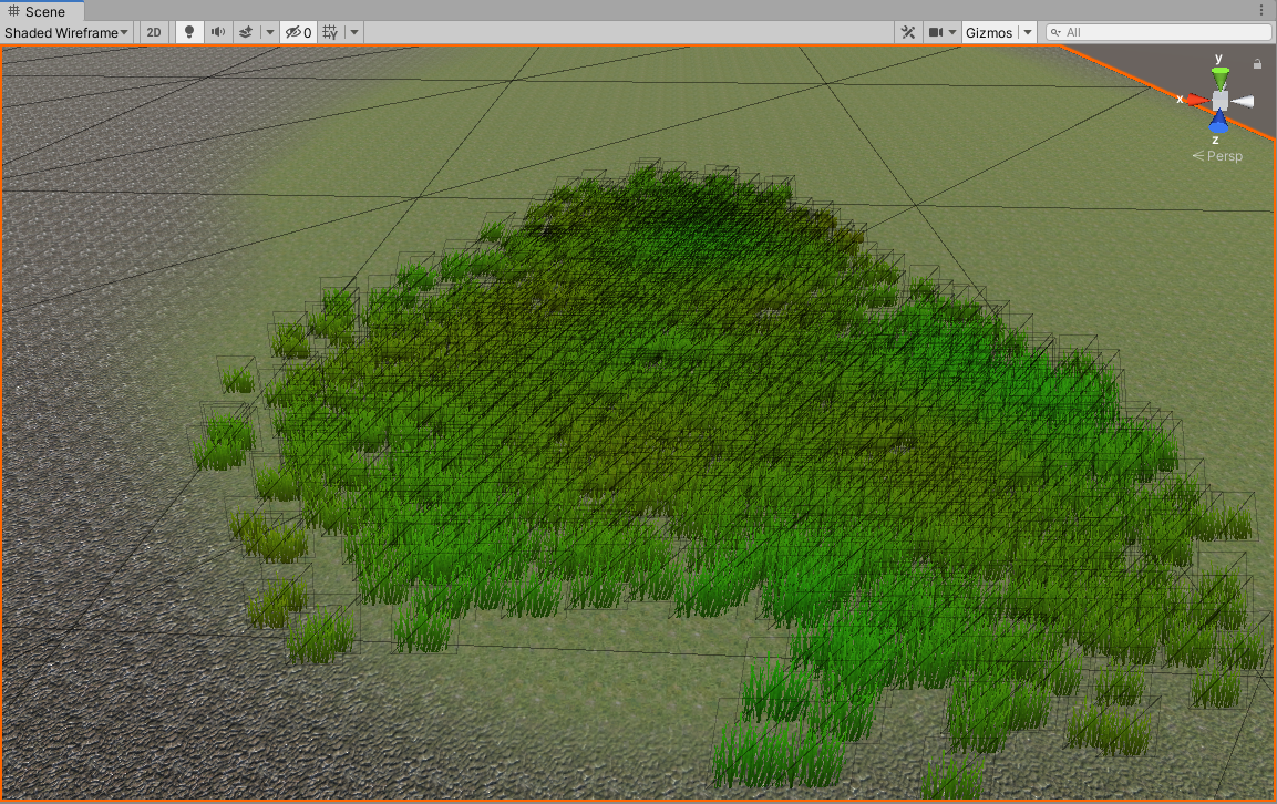 아래에서 detail resolution per patch - 32, detail resolution - 64로 설정한 터레인의 디테일 밀도(단위 patch에 대한)를 확인할수있다.