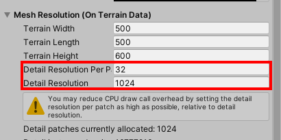 6)mesh resolution의 detail resolution per patch, detail resolution의 수치를 조절해서 단위 면적에 대한 디테일 밀도를 설정할수있다.