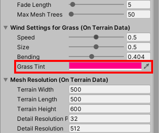 15)터레인 세팅의 grass tint 색상을 적용하여 디테일 오브젝트의 전반적인 색상을 설정할수있다.